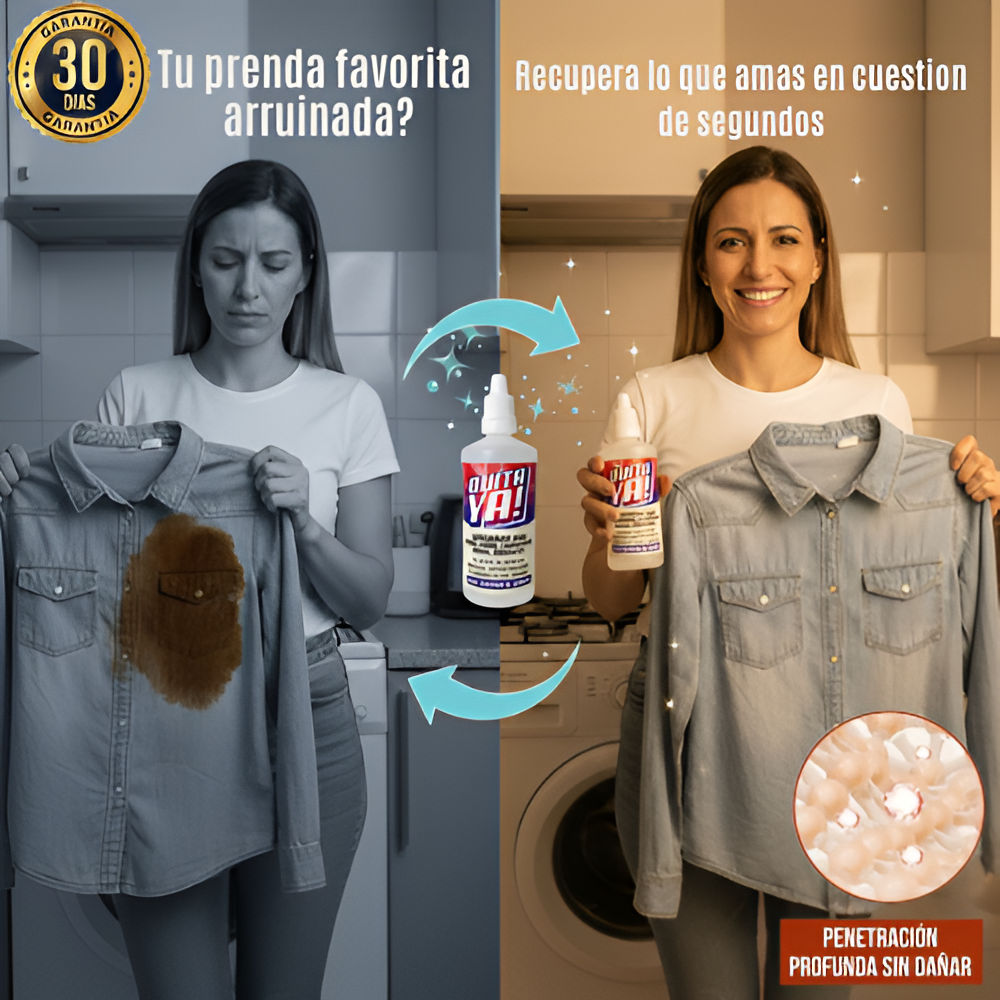 ¿Cansado de botar tus prendas por oxido y manchas inquitables?👚😪: Olvidate de esas manchas en cuestion de segundos con nuestro QUITA YA!
